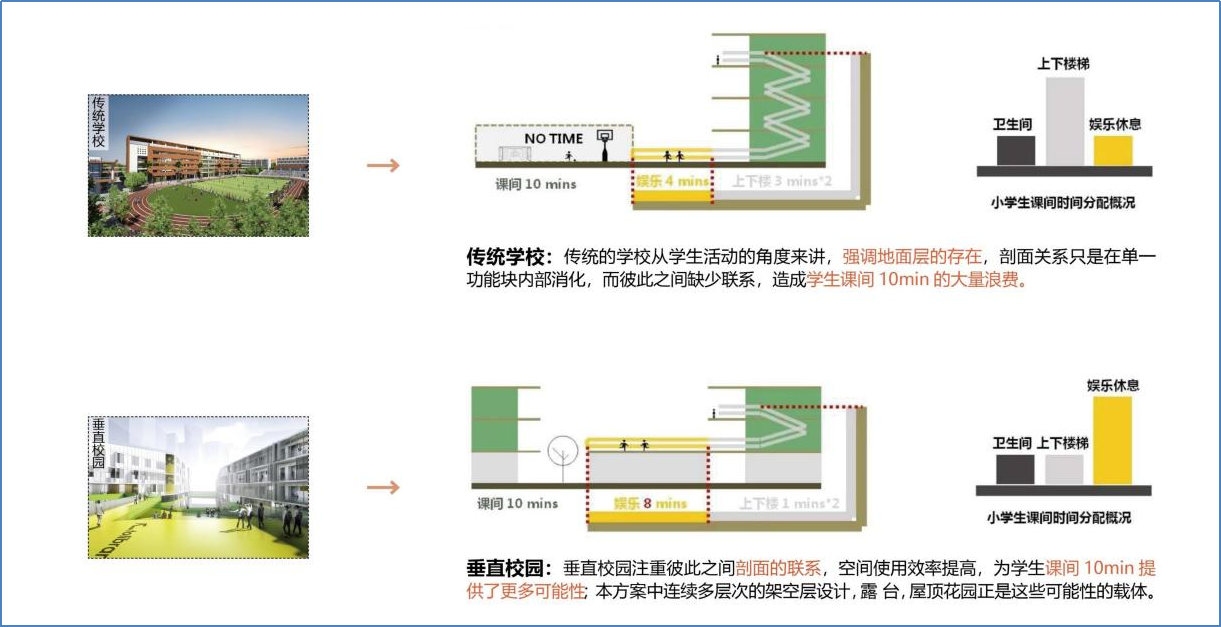 項目周邊交通便捷,生活便利,人口密集,自然景觀豐富,為打造“綠色校園”和“文化校園”提供了良好的基礎。項目組通過連廊設計,將不同空間相互串聯,打造多層次的立體花園景觀,在平面與垂直方向上創造最大化的交往平臺。利用屋頂平臺設置公共空間,將空間還給學生,創造以互動為核心的自然課堂等設計手法打造多元一體化校園,建成后將為龍華區師生提供一個寓教于樂的理想樂園。