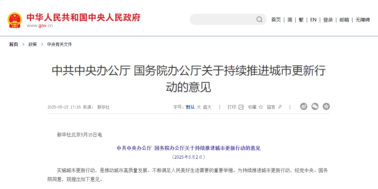 中共中央辦公廳 國務院辦公廳關于持續推進城市更新行動的意見